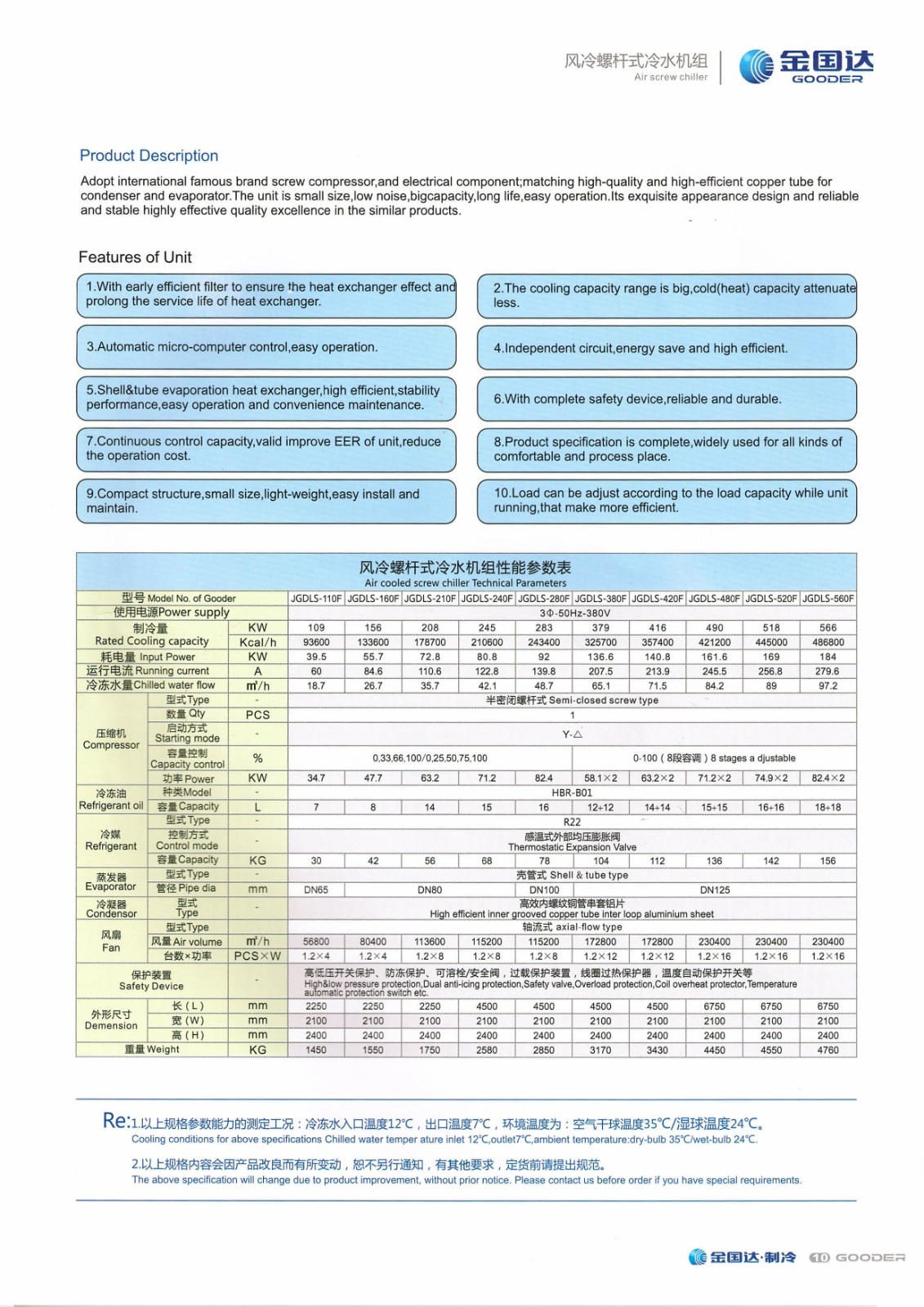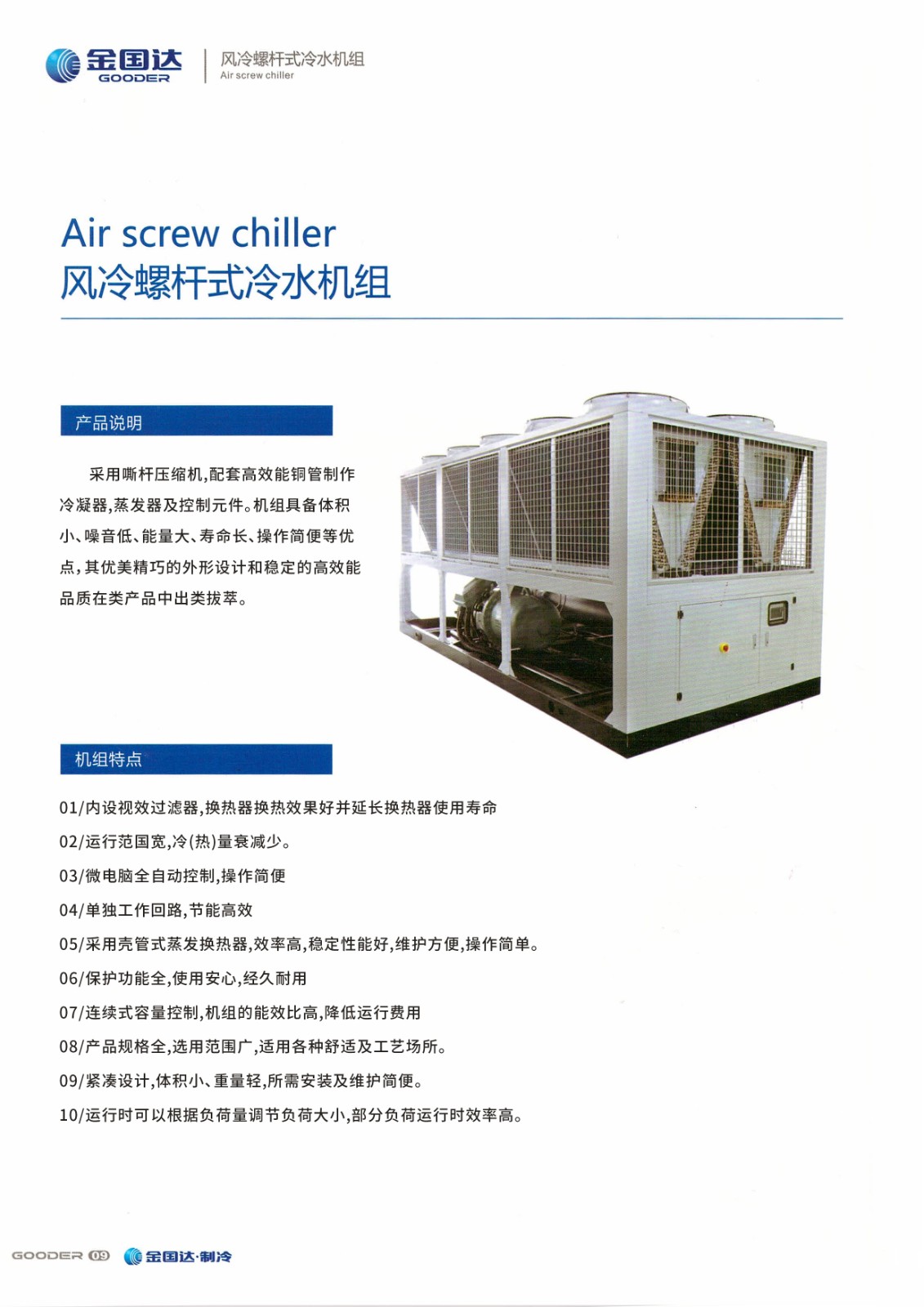 產品描述:風冷螺桿式冷水機組風冷螺桿式冷水機組產品簡介:品 名:風冷螺桿式冷水機組; 功 能:冷 媒:熱 源:冷 卻:認 證: