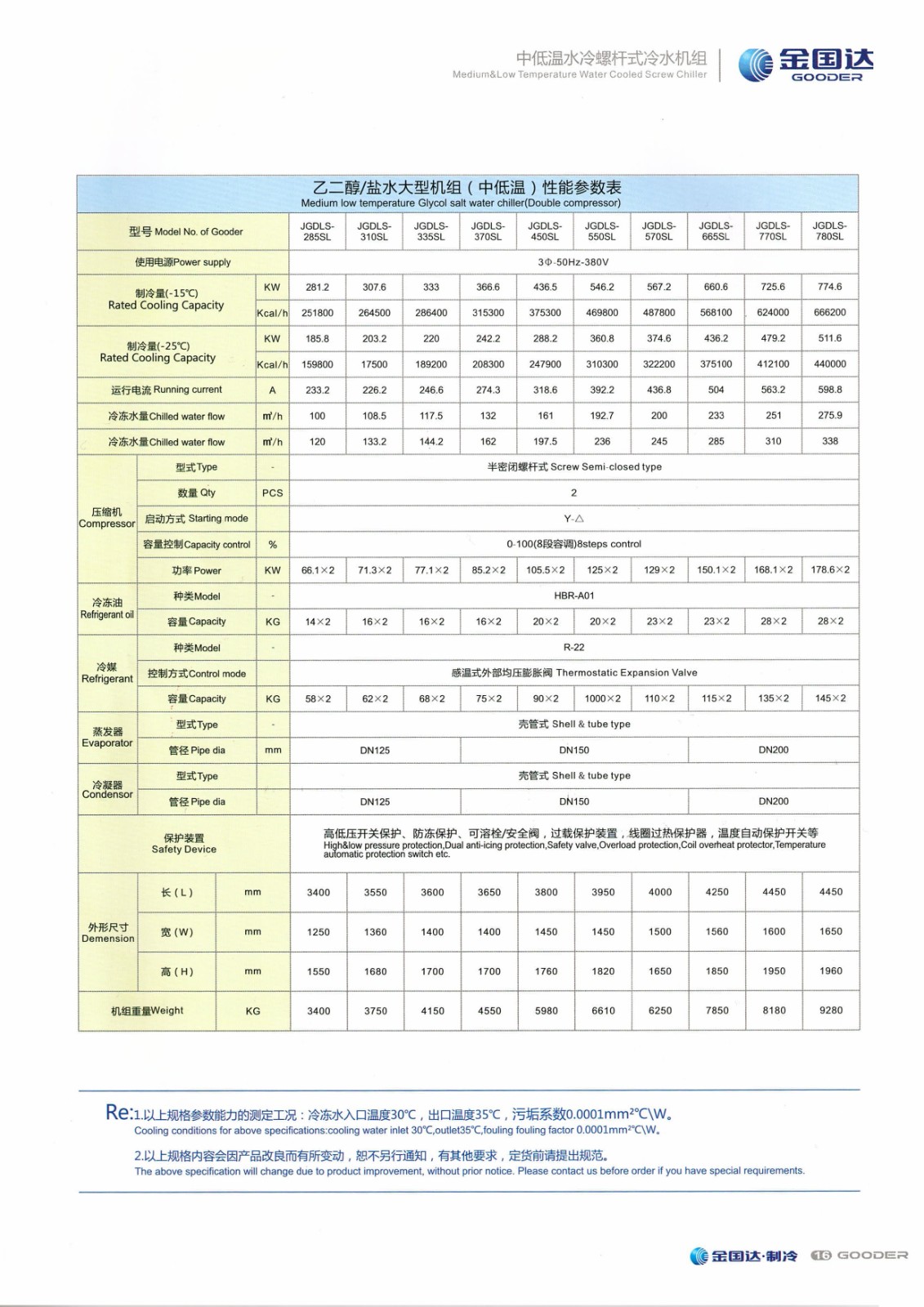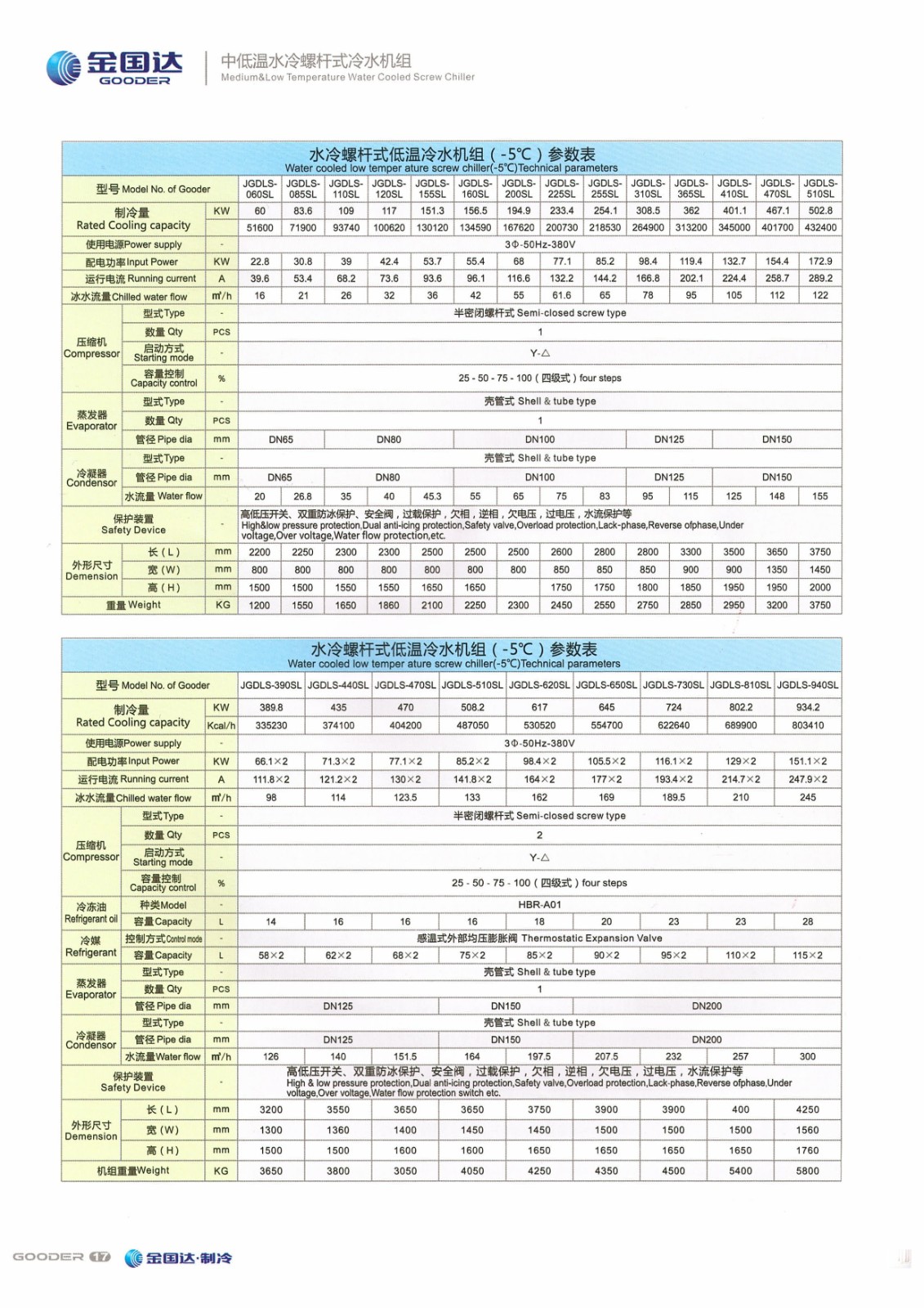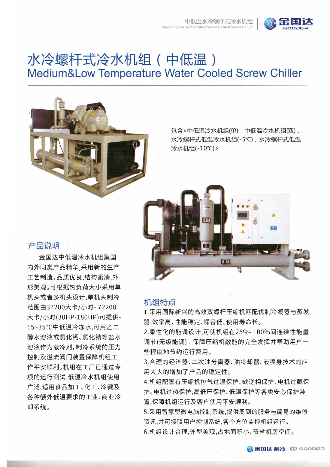 產品描述:水冷螺桿式冷水機組(中低溫) 中低溫冷水機組(單) 中低溫冷水機組(雙)產品簡介:品 名:冷凍冷藏機組; 系 列:JGDZL;壓 機:半封閉式、螺桿式(可選);功 能:冷藏、冷凍、熱水回收型(余熱利用);冷 媒:環保型、常規型(可選);熱 源:空氣能、冷卻塔(地下水、江河水、湖水、海水、生活污水及工業廢水等)冷 卻:風冷卻、水冷卻認 證:通過國家節能產品認證;
